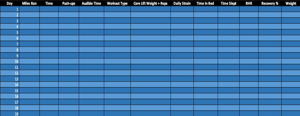 Happy New Year everyone! I’m going to start this year with how I’m going to track my development as a person and coach. I’ve previously discussed how important data and technology has become in baseball, and it’s here to stay. All of the focus has been on players and how can we make them better through these advancements in technology. However, I believe that staff development is uncharted territory when it comes to using data. I may be biased because of my background in strength and conditioning…but too many coaches don’t take their health seriously enough. At the end of 2019, I became much better using Microsoft Excel and I’ll be using it to track some data points that I think will be important to my health and development. Here is the chart of everything that I will be tracking on a daily basis: